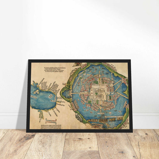 Mexico Aztec Map Poster | Cortés Mexico City Wall Art