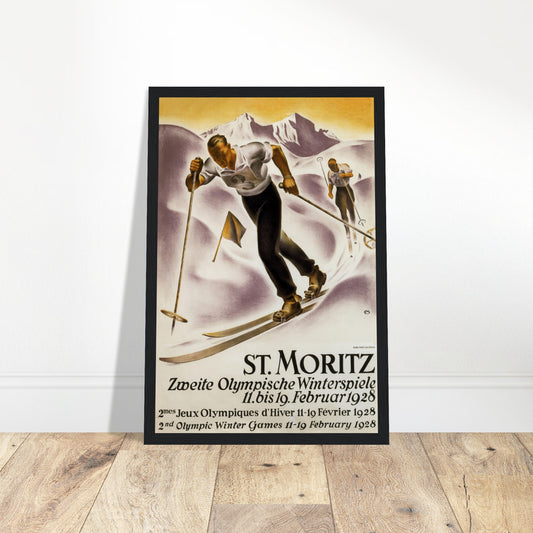 Vintage Cross-Country Skiing Poster – St. Moritz 1928