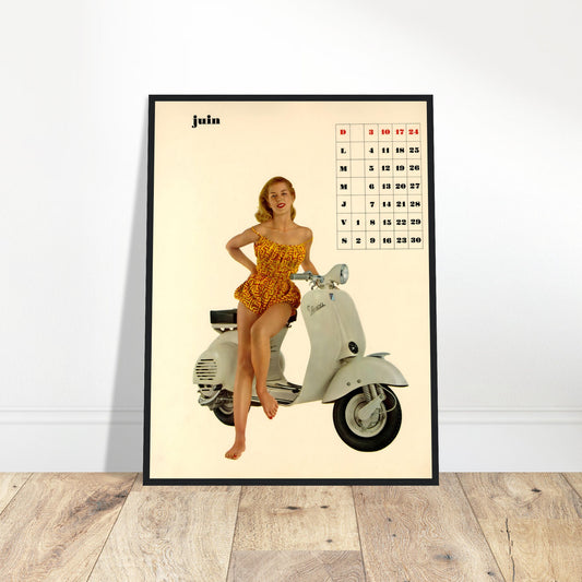 Affiche du calendrier Vespa de juin | Art du scooter italien